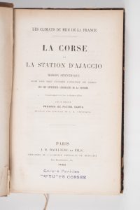 Pietra Santa, Prosper de. - Les climats du midi de la France. La Corse et la station d'Ajaccio, mission scientifique ayant pour objet d'étudier l'influence des climats sur les affections chroniques de la poitrine, second rapport à S. Exc. le...