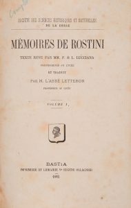 Rostini. - Mémoires de..., texte revu par MM. P. et L. Lucciana professeurs au lycée (de Bastia] et traduit par M. l’abbé Letteron, professeur au lycée [de Bastia]. - Bastia : Veuve Eugène Ollagnier, 1882. -