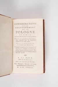 Rousseau, J.-J., citoyen de Genève. - Considérations sur le gouvernement de Pologne et sa réformation projetée, et lettres sur la législation de la Corse dans lesquelles tous les souvearins trouveront des choses utiles… - À la Haye, chez P....