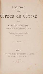 Stephanopoli, Patrice. - Histoire des Grecs en Corse par... Illustré de trois planches en couleur et une gravure. - Paris : Ducollet frères, 1900.