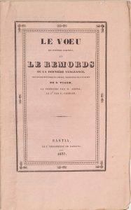Viale, Salvatore. - Le voeu de Pietro Cirneo, et le remords ou La dernière vengeance. Nouvelles historiques corses, traduites de l’italien de S. Viale, la première par M. Aréna, la seconde par P. Capelle. - Bastia : Fabiani, 1837.