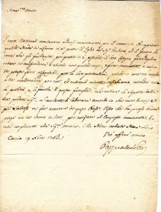 I nostri nazionali cominciano a darsi muovimento per il commercio. Per aprirne qualche strada in Livorno, vi si porta il figlio del signor Giuliani ed il genero. Io vorrei che gli facilitaste per quanto vi è possibile il loro disegno facendogli entrare in corrispondenza di società con qualche onesto e forte mercante, a cui voi potreste farvi risponsabile per la loro puntualità, poiché io me ne rendo a voi mallevadore per essi, ed entrambi niente risichiamo, essendovi note la probità e le facoltà di questa famiglia. Le notizie, le saprete dalli due predetti signori. L’accidente di Calenzana, temendo io che non divenisse più scabroso mi fece avanzare in questo paese. Visto che ha preso buona piega me ne ritorno in Corti per assistere al congresso imminente. I miei complimenti alla Signora monca.