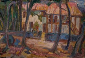 Vera T. (épouse Trach Tenberg). - Chalet de Vizzavona. - dans les années 20. - Huile sur carton,