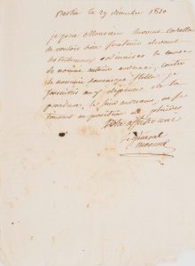 Morand, général Commandant en chef le corps des troupes françaises en Corse. - L. a. s. à l'avocat Carella, - Bastia, le 29 décembre 1810.