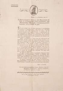 [Philatélie, exemption de taxes]. - L'amministrazione centrale del dipartimento dei golo, ed il commissario presso la medesima, agli amministratori municipali e commissari presso le medesime, ed ai giudici di pace. - Bastia li 29 Fruttidoro anno 6.