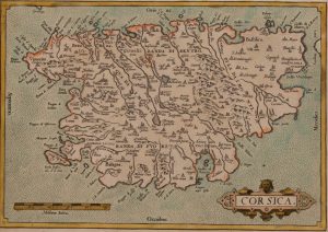 Ortelius. – Corsica. - 17 x 24 cm, aquarellée, c.1600.