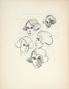 Édition originale très rare publiée sans nom d’auteur ni d’illustrateur, ornée de 21 portraits de Gala dessinés par Max Ernst, chacun placé vis-à-vis d’un poème de Paul Eluard.