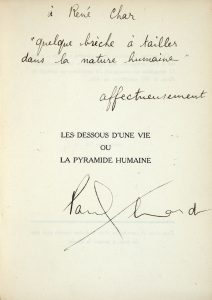 ELUARD (Paul). Les Dessous d’une vie ou La Pyramide humaine. Édition ornée d’un portrait de Max Ernst. Marseille, Les Cahiers du Sud, 1926.