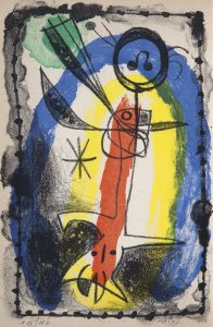 Un des 37 premiers exemplaires sur vélin du Marais, les seuls comportant en frontispice une lithographie originale en couleurs signée de Miró, numérotée (16/40).