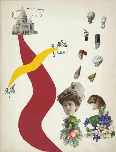 Très beau collage original de Gisèle Prassinos exécuté sur une double couverture de papier blanc au format du livre.