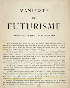 … Le chef d’œuvre doit disparaître avec son auteur. Vive les autos ! Vive la vitesse ! Vive les courants d’air ! Vive la foudre ! …