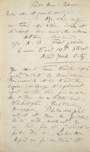 Cette lettre appartient à la dernière période la vie d’Arthur Cravan, au cours de laquelle, fuyant la guerre, il était parti pour les Etats-Unis. Il voyageait alors énormément, et cette lettre est très précieuse pour connaître exactement tous ses déplacements.
