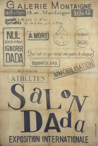 Superbe et rarissime affiche typographique de grand format de l’importante exposition Dada ayant eu lieu à Paris en 1921.