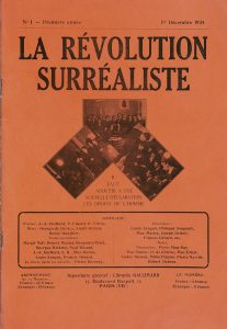 LA RÉVOLUTION SURRÉALISTE. Directeurs : André Breton, Pierre Naville et Benjamin Péret. Paris, Gallimard (et José Corti pour le dernier n°). Du N° 1, décembre 1924, au N° 12, 15 décembre 1929.