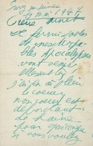 ARTAUD (Antonin). Lettre autographe signée à Pierre Minet, datée Ivry-sur-Seine 11 mai 1947,