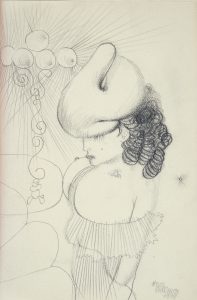 Un des deux exemplaires hors commerce sur Japon nacré (exemplaire B), comportant un très beau dessin original signé de Bellmer, daté 1939.