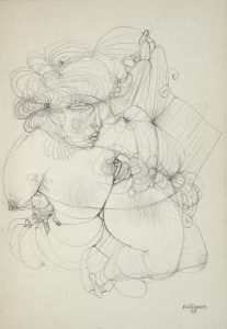 Au dos, quelques notes au crayon de Bellmer : fiel mielleux, avoir raison d’être flou (il avait assez de bon sens de devenir fou, il lui en resterait juste assez de bon sens pour devenir fou).
