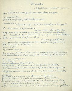 - Décembre, sonnet composé en décembre 1915, parut dans L'Eventail du 15 février 1919 ; repris, mais sans la dédicace à Apollinaire, dans Mont de Piété. Texte sans variantes.