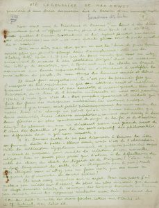 BRETON (André). Vie légendaire de Max Ernst, précédée d'une brève discussion sur le besoin d'un nouveau mythe. Manuscrit autographe, Sans date [1942],