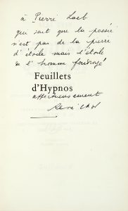 CHAR (René). Feuillets d’Hypnos. Paris, Gallimard, 1946.