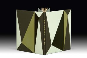In-4, box olive, chaque plat orné d’une composition de triangles mosaïqués bord à bord en box, verni ou mat, olive foncé, gris, vert clair ou gris-vert foncé, doublure bord à bord et gardes de box gris-vert clair, tranches dorées sur témoins, couverture et dos conservés (P.-L. Martin, 1962).