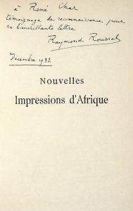 [CHAR René] – ROUSSEL (Raymond). Nouvelles Impressions d’Afrique. Paris, Alphonse Lemerre, 1932.