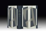 In-12 carré, demi-veau gris, plats ornés d’un important décor mosaïqué de papier mat gris foncé et gris moyen sur un fond de papier glacé blanc, dos lisse, tête dorée, non rogné, couverture et dos conservés, chemise, étui (P.-L. Martin, 1960).