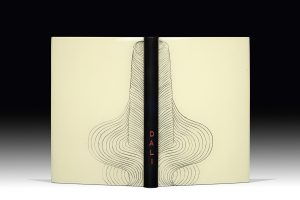 42 pages in-12 montées sur onglets dans une reliure ivoire en matière plastique, dessin linéaire sur les bords inférieurs du premier plat, dos de box noir, nom de l’auteur en caractères rouges, avec sa couverture originelle (Mercher).