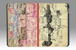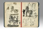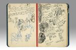 Très important manuscrit inédit, tenu au jour le jour, contenant des notes, critiques, impressions d’art, très nombreuses dépenses journalières, etc d’une écriture minuscule, aux encres rouge et noire, et illustré d’un très grand nombre de dessins originaux sur 33 pages : personnages, nus, dessins érotiques, colonnades, chevaux, cavaliers, têtes raphaélesques, homme ou femme poisson… jetés pêle-mêle au hasard du texte.