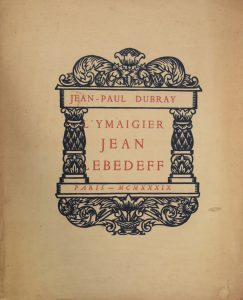 LEBEDEFF J. / Dubray J.-P. L’ymaigier Jean Lebedeff Paris, 1939.