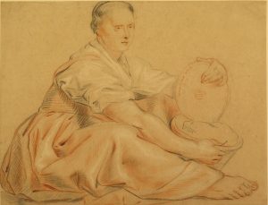 [Drawing] - 4 drawings, s.d. Not signed. [Country woman at the market], black and red pencil, laid paper