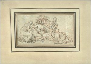 [Drawing] - [Lamentation over the dead Christ], s.d. Brown ink pen heightened with red pencil and small traces of blue wash drawing,