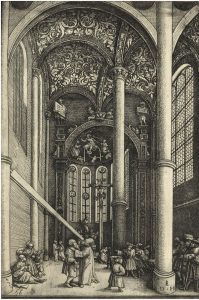 Mostly ornaments, fountains, decorative motives... Without numbers : Bartsch 39 (The Virgin and st. Elizabeth), 112, 108, 145 (?) & 129. With numbers : B 19 (Christ blessing the Virgin, with saints standing around), 25 (Parable of the mote and beam), 63 (A soldier and his wife), 76, 90, 102, 104, 105, 106, 110, 120 (Alphabet), 121, 126 and ?.