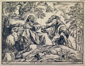 JEGHER, Christoffel Temptation of Christ by devil, 17th c. Woodcut after P.P. Rubens,