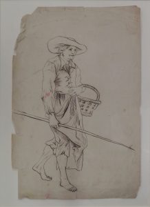 DE BRAEKELEER, Ferdinand, attr. - [Blootvoetse visser met mandje en speer], s.d. Pentekening,