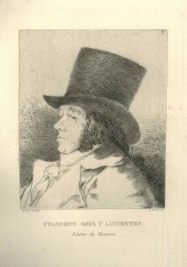 Set of 58 (of 80) prints. Present : n. 1 (self portrait of Goya), 2-4, 11, 13-19, 21-22, 24-27, 29, 31, 35-46, 48, 50, 52-54, 56-58, 60-70, 72-74, 77-80.