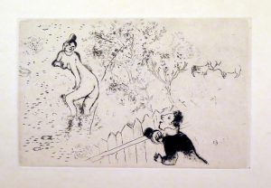 Rare série complète des 5 gravures de M. Chagall, V. Prax, M. Gromaire, J. Lurçat et O. Zadkine. La gravure de Chagall "Die Begierde. III", est une variante du n. 9 de la série "Die sieben Todsünden".