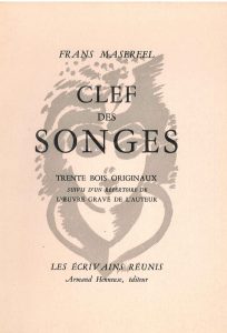 MASEREEL, Frans - Clef des songes. Trente bois originaux suivis d'un répertoire de l'oeuvre gravé de l'auteur. Lyon, Armand Henneuse, Les Ecrivains réunis, 1950 in-8 (lég. décharge brune sur le titre et le f. de justif.), br., couv. ill. Bon...