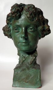 Terre cuite à patine vert bronze, +/- 29 x 22 cm; signée sur le côté gauche.