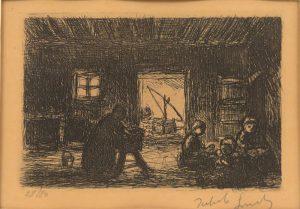 Ets, 10,5 x 15 cm, Japans papier, kleine marges; met inkt gesign., met potlood genum. 28/80. Ingelijst onder passe-partout. Uitgelijst.