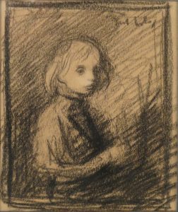 Charmante, aandoenlijke schets van een kind in 3/4 houding.