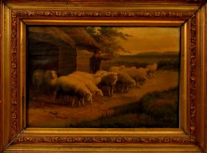 VAN LEEMPUTTEN, Jef Louis - [Het verlaten van de schapenstal], s.d. Olieverf op doek,