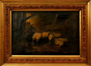 VAN LEEMPUTTEN, Jef Louis - [In de schapenstal], s.d. Olieverf op doek,