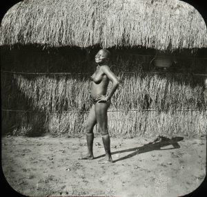 Mostly portraits of indigenous people. School children in Alladah (Benin), views of Porto Novo and Coutonou (Benin): street and baobab, Okahandja (Namibia), Ngambo tribunal (Zanzibar), views of Bagamoyo and Dar-el-Salaam (Tanzania), etc. South Africa : Usambara, Johannesburg and Kwai. Half of the diapositives without location indication (possibly Congo or surroundings ?) showing peasants, cattle, villages, ivory trade, people posing near a crocodile, a chief and his family, an elephant, a hammock to travel in, etc. We join : 82 images of illustrations and text fragments from a handbook and also original photographs (?) of Free Town and Bathurst in Sierra Leone. Images in colors.