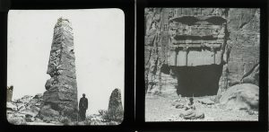 In situ and museum images of monuments, ruins, temples, statues, bas-reliefs, sarcophagi, walls, etc. A.o. images of the Jupiter temple, the acropolis, the Cyclopean Wall, a quarry in Baalbek (in situ), the Sun temple and Colonnades in Palmyra (in situ) of which we assume the're partly as not fully destroyed in a blast during the Syrian war. Images of an Assyrian art collection, the sarcophagus of Sidon in Istanbul, collections in the British Museum, the Louvre, etc. Images of Petra : tombs, pyramids, ruins of ancient Christian temples, Ad Deir, Al Khazneh, the Sik. 1 smaller box of glass negatives. Labels : "Beernaert's D.P.C.".