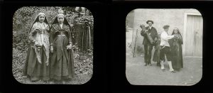 Images of Betharram, Lourdes (Notre Dame du Rosaire de Lourdes, esplanade, ambulance, a procession, the house of Bernadette, the baths, disabled people in wheelchairs,...), Luchon, Cauterets, Biarritz (the strand and the lighthouse), Pau, Orthez, Lucha, St-Jean-de-Luz, Jurançon, le Chaos (route de Gavarnie), people living in the mountains, a dancing bear...