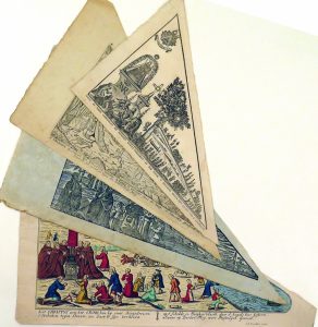 Bedevaartvaantjes - 47 bedevaartvaantjes, enkele 18de, overwegend 19de en 20ste eeuw. Veelal op handgeschept papier, verschillende technieken, sommige gekleefd op papier. Algemeen in goede staat.