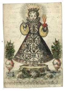 Christus-kind. Grav. op perkament, +/- 9 x 6 cm, oudgekleurd en goudgehoogd. - S. Bartholomaeus. Oudgekl. grav. op perkament, +/- 8 x 5,5 cm. Kort afgesneden. - S. Ursula. Grav. op perkament, +/- 12 x 9,5 cm, oudgekl., gesign. Cornelius de Boudt. - S. Joseph. Grav. op perkament, +/- 12 x 9 cm, oudgekl., gesign. J. Van Sandt. Met kind Jesus op de arm. Vervuilde randen. - S. Maria Magdalena. Grav. op perkament, +/- 11 x 8 cm, oudgekl., gesign. I. De Wael. - Mater Dolorosa. Grav. op papier, +/- 11 x 8,5 cm, oudgekl., gesign. M. Cabbaey. Linker rand beschadigd.