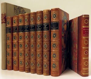 L'Hôtel des commissaires-priseurs, 1867. - Histoire de l'imagerie populaire, 1869. - Souvenirs et portraits de jeunesse, 1872. - Histoire des faïences patriotiques sous la Révolution, 1875. - Histoire de la caricature antique [- au Moyen Age et sous la Renaissance, - sous la République, l'Empire et la Restauration, - moderne], s.d. Tous avec l'ex-libris Aug. Lambiotte. Joint : Claudin, A. - Catalogue des livres rares et curieux en tous genres composant la bibliothèque de feu M.A. Rochebilière. Paris, A. Claudin, 1884, in-8, demi-veau à coins, dos lisse orné doré, étiq. de cuir rouge, couv. cons. - Beauchamps, J. de, Rouveyre, Ed. - Guide du libraire-antiquaire et du bibliophile. Paris, E. Rouveyre, s.d., in-8, demi-toile à coins. (10 vol.)