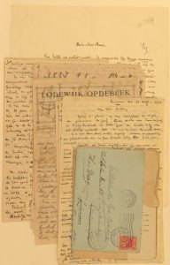 In goede staat. Belangrijke vroege correspondentie: 10 lange brieven (1914-1916) van zijn vader, uitgever Lode Opdebeek (1869-1930) over de toestand van de familie; 1 brief van een Amsterdamse vriend (1916); 1 brief (1919) van de Utrechtse taalkundige Jos. Schrijnen over de verhouding Nederland-België, op briefpapier van het “Nederlandsch Universitair Comité voor Studiehulp aan Krijgsgevangen Studenten”. Bijgevoegd : 1. Brieven (6) en foto’s (2) van andere Vlaamse auteurs: V. Dela Montagne (Franse ontslagbrief aan "le Ministre de la Justice", 16.01.1900), Paul de Keyser (1926, aan een Gents academicus over "Het Brabands Nachtegaelken", en over D. Stracke), Raymond Brulez (brief aan cineast H. Storck, 1952), Karel Jonckheere (2 brieven aan Maurits Sabbe, 1 brief van Willemsfonds Brugge over Jonckheere, alle uit 1936), 2 foto’s genomen op de Gentse Boekenbeurs 1957 (1 van Ernest Claes, 1 van André Demedts in gesprek met Johan Daisne). 2. 4 brieven of documenten van Franstalige kunstenaars (o.a. Mark F. Severin en Auguste Musin).
